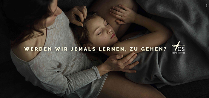 Wir können ja alles. Und alles so gut. Selbstverständlich können wir, wenn wir nur wollen. Leistung, Erfolg, Geld, Macht. Können wir. Die Grundlagen, wie stehen, laufen, lieben, leben. Können wir. Von klein auf. Groß sind wir geworden. Und erst unsere Schritte. Schneller, weiter höher. Können wir alles. Können wir alles? Wenn es ums Sterben geht, sind alles Können und alle Größe dahin. So gut wir im Leben sind, so hilflos sind wir oder die meisten von uns am Ende. Angesichts der Dinge, die wir doch alle so gut können, eine Frage: Werden wir jemals lernen, zu gehen? Diese Frage stellt die neue Kampagne des CS Hospiz Rennweg. Auf 24-Bogen-Plakaten und Anzeigen sind zwei unterschiedliche Sujets zu sehen. Beide zeigen eine innige Umarmung, die Hoffnung, nicht loslassen zu müssen, und die unausweichliche Frage: Werden wir jemals lernen, zu gehen? Sie soll zum Nachdenken anregen und unaussprechliche Gefühle ansprechen.