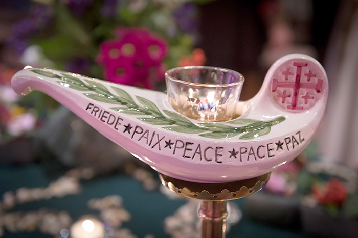 Die Friedenslampe aus Jerusalem schmückt seit jeher den Altartisch. (c) SZ Friesgasse