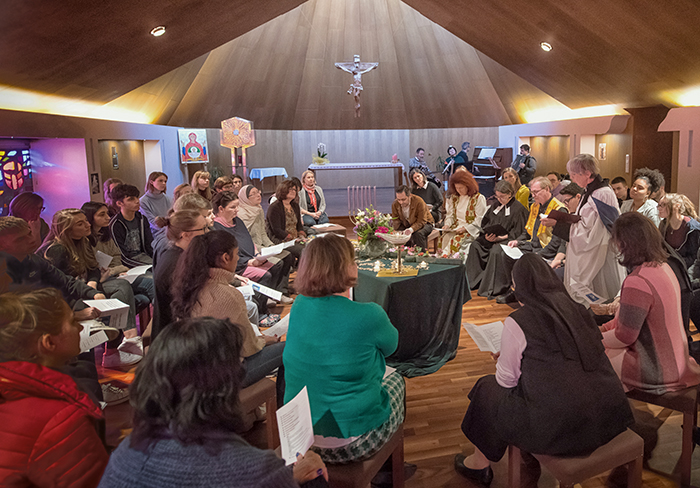 Im stimmungsvollen Rahmen der Schulkapelle nahmen SSND Schwestern, die Direktorinnen und Direktoren, der Lehrkörper sowie ausgewählte Schülerinnen und Schüler aus allen Schulformen teil. Die einzelnen Vertreterinnen und Vertreter der Gemeinschaften trugen mit ihren Gebeten dazu bei, das diesjährige Motto „WIR – in Beziehung“ inhaltlich zu bereichern. Dem gemeinsamen Friedensanliegen, der Achtung voreinander und der Verbundenheit untereinander wurde dabei sichtbar Raum gegeben. Verbindendes Element in der Mitte des Altartisches war wie immer die Friedenslampe aus Jerusalem. Die stimmungsvollen Klezmer-Lieder der Band des Schulzentrums gaben der Feier ein ganz besonderes Gepräge.