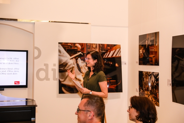 Die Fotografin Magdalena Schauer gibt eine Einführung in das Thema der Ausstellung: #einfach statt zweifach- Gesichter der Orden (c) Medienbüro Ordensgemeinschaften