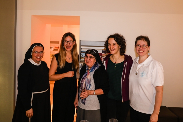 Die Fotografin (2te v. links) mit den musizierenden Ordensfrauen des Abends: Sr. Maria Irina Teiner (links) und Sr. Elisabeth Knapp (ganz rechts) (c) Medienbüro Ordensgemeinschaften