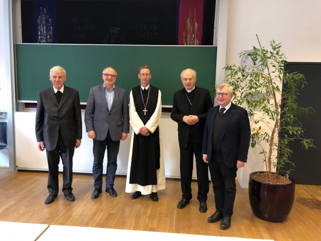 Prof. Johann Hirnsperger, Dekan Christoph Heil, Abt Philipp Helm OCist, Bischof em. Egon Kapellari und Prof. P. Stephan Haering. (c) Gsellmann