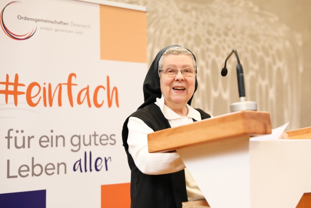 Den Reigen der Vorträge am Ordenstag am 26. November 2019 im Kardinal König Haus in Wien XIII eröffnete Sr. Jordana Schmidt, Mitglied der Ordensgemeinschaft der Dominikanerinnen von Bethanien. Thema ihres Vortrages lautete „einfach da sein“ – was durchaus zum Tagungsmotto „Das [gar nicht so] einfache Leben“ passe. Jordana Schmidt, 1969 in Grevenbroich geboren, kam zum Ordensleben, indem sie als 17-jährige eine Freundin besuchte, die gerade ein freiwilliges Ordensjahr in einem Zisterzienserinnenkloster in Dänemark absolvierte. Die damalige Priorin meinte, auch Jordana sei berufen. Die junge Frau wollte eigentlich Kinderkrankenschwester werden und hatte einen festen Ausbildungsplatz. Dennoch: „Ich glaubte der Frau, dass ich genau hierhergehörte“, erinnerte sich Sr. Jordana in ihrem Vortrag. Allerdings musste sie noch das 18. Lebensjahr abwarten.