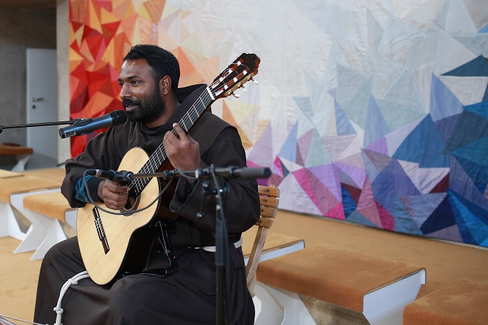 P. Sandesh stammt aus Indien und lebt im Konvent der Franziskaner im 1. Gemeindebezirk. Er tut dort seine Dienste, feiert Messen, betet und arbeitet mit der Gemeinschaft. Nur am Abend nimmt er sich "etwas Zeit" für You Tube. Seine Videos produziert er hauptsächlich an Wochenenden - Samstag ist sein freier Tag. Er covert Hits von berühmten Musikern, aber die meisten seiner Songs, manche in einer indischen Sprache, schreibt er selber. Seine Musik wird extra in einem Tonstudio aufgenommen, seine Videos sind professionell gemacht. Freunde unterstützen ihn in technischer Hinsicht. P. Sandesh schneidet seine Videos auch selbst.
