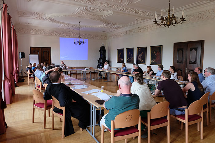 So lieferte zum Beispiel Manfred Massani, Bibliothekar der Provinzbibliothek der Kapuziner in Innsbruck, einen Erfahrungsbericht über seine Arbeit. In den letzten 20 Jahren hätte der Kapuzinerorden ungefähr 15 Klosterbibliotheken schließen müssen. „Wir sind mit einer relativ großen Anzahl von Büchern konfrontiert, die in unsere Provinzbibliothek kommen – oder auch nicht, je nach Entscheidungslage“, erzählt Massani. Deshalb mussten auch ganz unterschiedliche Lösungswege beschritten werden. „Grundsätzlich ist es so: Wir haben eine Vorgabe aus Rom; wir beschränken uns hauptsächlich auf kapuzinische-franziskanische Literatur und dann auf die spezifischen Sammlungsgebiete, die jede Provinzbibliothek hat. Das ist unser Orientierungsmaßstab.“ Die zeitliche Grenze liege bei 1850. Der restliche Bestand würde dann in der Regel frei, und das sei doch eine relativ stattliche Anzahl von Büchern, die an Dritte weitervermittelt werden können.