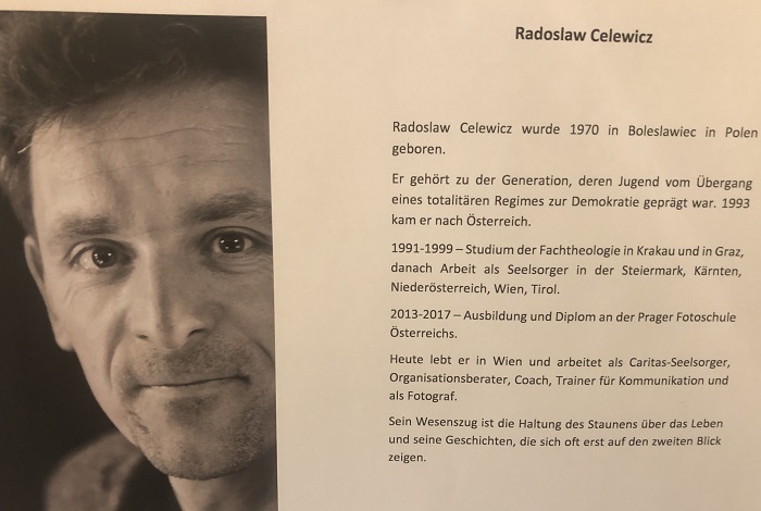 "Ich spüre das Künstlerische in mir und kann mit dieser digitalen Technik dem einen Ausdruck geben. In einer dreijährigen Such- und Experimentierphase habe ich die Möglichkeiten dieser verschiedenen Apps kennengelernt und die Möglichkeiten ausgelotet." Radoslaw Celewicz nennt bei der Eröffnung die in unserem Kulturkreis noch unbekannte Technik der Appografie locker und landläufig "Apperei". Als Seelsorger, Coach, Fotograf und Künstler widmet der sich seinem Hauptthema, "dem Staunen". Beim Kreuzweg ist ihm wichtig geworden, "was Jesus, dieser Mensch erfahren hat und das dieser Mensch die Welt bewegt hat. Und doch war es damals wie heute: Vielen Menschen war und ist das egal, 'wurscht'." Es war ihm ein Anliegen, den Kreuzweg "einfach, eindringlich und stark werden zu lassen. Er soll aber nicht schreien, sondern wecken, wach machen."