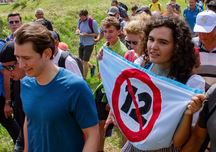 Julianna Fehlinger hat Soziale Ökologie in Wien studiert, ist Geschäftsführerin der Österreichischen Berg- und Kleinbäuer_innenvereinigung (ÖBV), hat selber drei Jahre einen Bauernhof bewirtschaftet und war mehrere Jahre im Vorstand von ATTAC Österreich. Sie wurde medial bekannt als „Dirndl- Aktivistin“ gegen den 12-Stunden-Tag bei der PR-Wanderung von Sebastian Kurz. Foto: © Ferdinand Kaineder