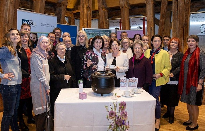 Der Einladung zum Benefizsuppenessen der Aktion Familienfasttag der Katholischen Frauenbewegung Österreichs sind auch heuer wieder zahlreiche Vertreter*nnen aus Politik und Kirche gefolgt, darunter Doris Schmidauer, Frau des amtierenden Bundespräsidenten Alexander Van der Bellen, Margit Fischer, Frau des ehemaligen Bundespräsidenten Heinz Fischer, ÖVP-Menschenrechtssprecherin und Nationalratsabgeordnete Gudrun Kugler, SPÖ-Frauensprecherin und Nationalratsabgeordnete Gabriele Heinisch-Hosek, der stellvertretende Bundessprecher der Grünen und Mitglied im Grünen Bundesvorstand, Stefan Kaineder, die Grüne Wiener Landtagsabgeordnete und künftige Vizebürgermeisterin Birgit Hebein, die bei der EU-Wahl für die Grünen kandidierende TV-Köchin Sarah Wiener, die ehemalige ÖVP-Frauenministerin Maria Rauch-Kallat, die Präsidentin der Vereinigung der Frauenorden Österreichs Sr. Beatrix Mayrhofer und der frühere Generalsekretär und geistliche Assisent P. Franz Helm, ÖGB-Frauenvorsitzende Corinna Schumann, der Generalsekretär der Österreichischen Bischofskonferenz, Peter Schipka, Bischof em. Maximilien Aichern, die Direktorin der Evangelischen Frauenarbeit Gertrude Rohrmoser, Amina Baghajati vom Forum muslimischer Frauen in der Islamischen Glaubensgemeinschaft, Brigitte Zinnburg vom Weltgebetstag der Frauen in Österreich, die Geschäftsführerin der KOO Anja Appel, der Geschäftsführer der Dreikönigsaktion, Jakob Wieser. Durch den Abend führte als Moderatorin Christine Haiden, Chefredakteurin von „Welt der Frauen“. Die ausgeschenkten Suppen stellte die Wiener Tourismusschule „Modul“ bereit, die Zutaten kamen vom niederösterreichischen Biohof Adamah, zahlreiche SchülerIinnen des „Modul“ servierten. „Saxolady“ Daniela Krammer hat die Benefizveranstaltung musikalisch gestaltet.