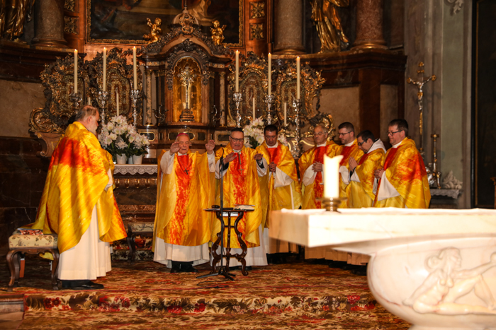 Männerorden-Vorsitzender Abt em. Christian Haidinger begann seine Dankesrede mit einer Anekdote. Er erinnerte sich an den 28. April 2009; der Tag, an dem die Superiorenkonferenz im Stift Klosterneuburg ihr 50-jähriges Bestehen feierte. Haidinger, seit zwei Jahren im Vorstand, hatte die ehrenvolle Aufgabe, ein Festreferat zu halten. Er schloss dieses mit der Bitte aus einem Gebet zur Vorbereitung und Begleitung des II. Vatikanischen Konzils: „Erneuere, Heiliger Geist, in deiner Kirche die Wunder wie in einem neuen Pfingsten!“