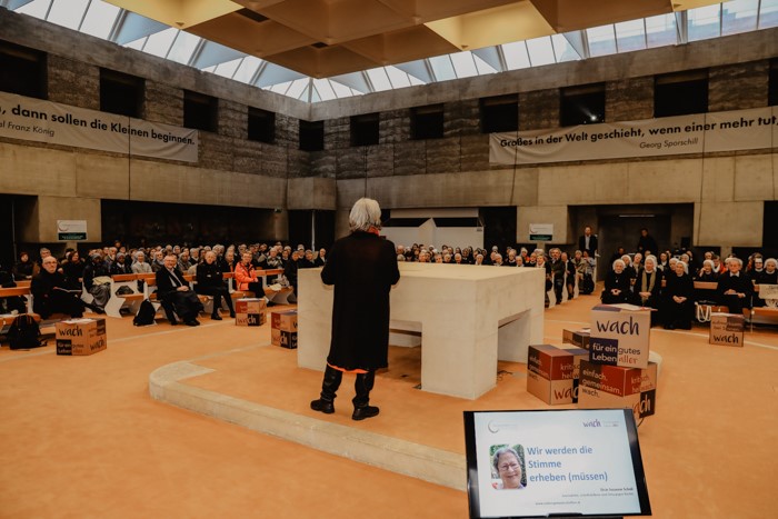 In der Plattform „Omas gegen rechts“ seien auch Opas willkommen, ergänzte Scholl und überhaupt alle, die wach und unzufrieden sind mit dem, was sie in Politik und Gesellschaft wahrnehmen. Sie appellierte an die versammelten Ordensleute: „Wir dürfen nicht aufhören, genauer hinzuschauen und müssen auch laut aufschreien, wo es notwendig ist.“