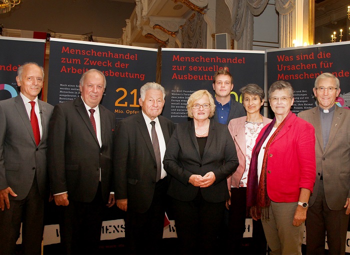 Laut einer Schätzung der Internationalen Arbeitsorganisation (ILO) bringt Menschenhandel, um Menschen auszubeuten, jährlich 32 Mrd. US-Dollar Umsatz. Eine Diskussionsveranstaltung zum Handel mit der Ware Mensch in Oberösterreich fand am 18. Oktober 2018 im Redoutensaal des Landes Oberösterreich statt – dem Europäischen Tag gegen Menschenhandel. Initiatorin ist Sr. Maria Schlackl von der Initiative „Aktiv gegen Menschenhandel – aktiv für Menschenwürde in OÖ“. Im Anschluss an die Vorträge diskutierten PolitikerInnen aller Parteien des Oberösterreichischen Landtages über die Verantwortung der Politik gegen Menschenhandel in Oberösterreich. Dr.in Christine Haiden moderierte die Podiumsdiskussion mit Landeshauptmann d. D. Dr. Josef Pühringer (ÖVP), dem zweiten Landtagspräsident Dipl.-Ing. Dr. Adalbert Cramer (FPÖ), der dritten Landtagspräsidentin Gerda Weichsler-Hauer (SPÖ) und dem Landtagsabgeordneten Stefan Kaineder (Grüne). Rund 170 VertreterInnen verschiedenster sozialer, politischer und kirchlicher Einrichtungen und Organisationen sowie private Interessierte nahmen an der Veranstaltung am 18. Oktober 2018 im Redoutensaal des Landes Oberösterreich teil, der somit zum Bersten gefüllt war.