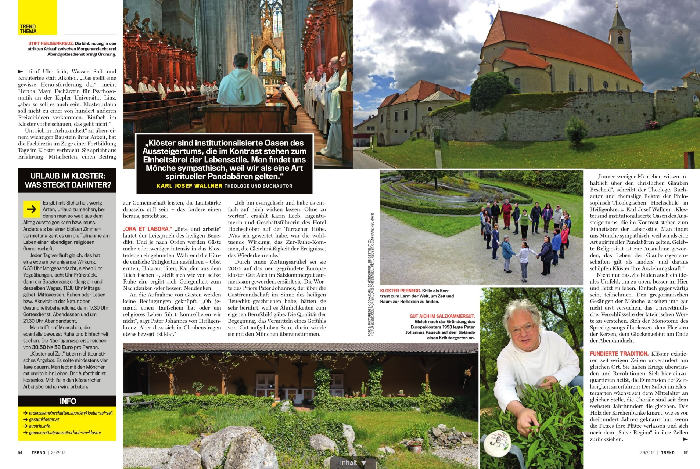 Das Wirtschaftsmagazin Trend hat den Trend des Auszeitsuchens im Kloster erkannt und auf seine Titelseite gebracht: „Boom der Klöster. Chillen unter dem Kreuz“ heißt der Aufmacher, auf den eine intensive Auseinandersetzung und Spurensuche nach dem Hintergrund der Anziehung, die Stift und Klöster auf uns ausüben, folgt: (*Hier in Auszügen)