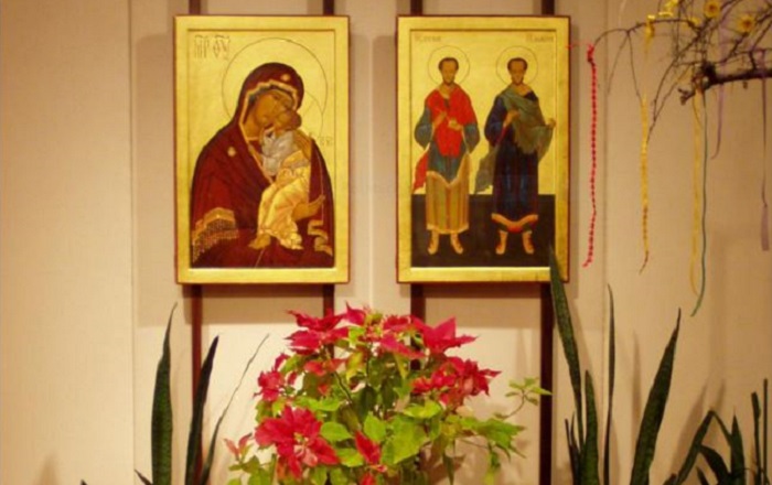 Katholische Kapelle des AKH Wien. Neben der Marienikone die Ikone der beiden Heiligen Cosmas und Damian. Foto: AKH Wien