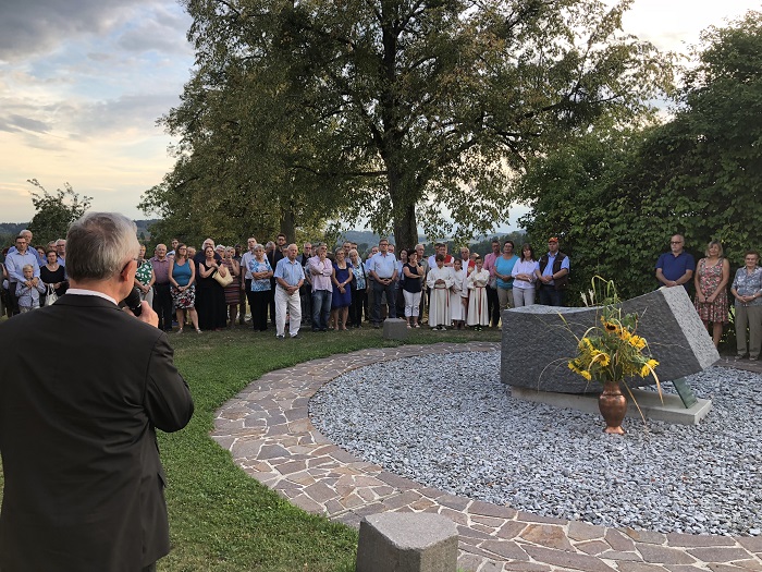 Der Bibelgarten füllte sich mit über 200 Personen, die am frühen Abend auf Anregung der Historikerin Erna Putz der unzähligen Opfer des NS-Regimes aus den Bezirken Perg und Freistadt gedachten. Wie in einer Litanei wurden die Namen der Verfolgten und Getöteten aufgerufen. Andreas Schnee, Musiker und Pädagoge an der ehemaligen Marianisten-Schule und dem jetzigen Stiftergymnasium in Linz, komponierte dafür sechs Stücke für vier Bläser. Sie wurden im Bibelgarten uraufgeführt.  Das erstmalige Gedenken in dieser Form ging weiter mit einer kurzen Prozession zum Denkmal für P. Jakob Gapp, Marianist am Greisinghof und vor 75 Jahren in Berlin hingerichtet, abgeschlossen. Der Abschiedsbrief, den Gapp vor der Hinrichtung an seinen Oberen geschrieben hat, wurde vorgelesen. Singend zogen die TeilnehmerInnen weiter in die Kirche.