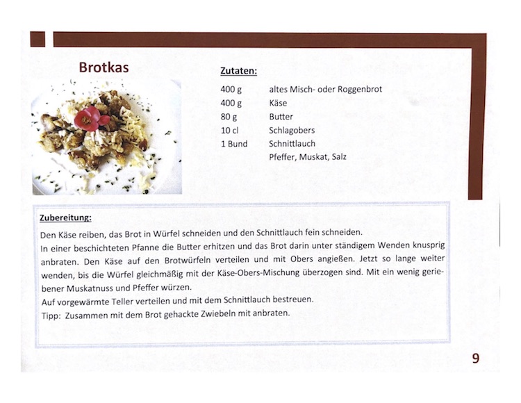 11 pikante Gerichte wie beispielsweise Brotkas, Brot-Finger-Food, Brot-Paprika Pfanne, Brotsuppe oder Zucchini-Brot-Puffer stehen zur Auswahl und 14 süße Gerichte wie Brotpops, Brotpudding mit Karamellguss, Brottorte, Brotknödel, Zimt-Zucker-Zwieback.