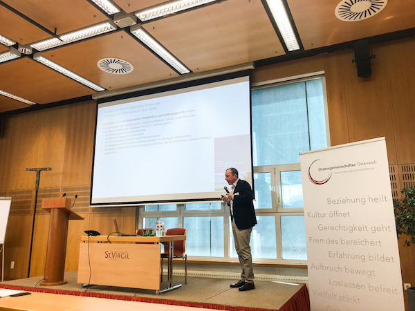 Der inhaltliche Teil der Veranstaltung begann am nächsten Tag mit der Hl. Messe und fasste am Vormittag drei Vorträge zu den Themen: Ethisch veranlagen setzt ethisch erwirtschaften voraus“ und „Grundsätze einer nachhaltigen Vermögensverwaltung Klaus Gabriel und Peter Krause sprachen hier einerseits über die ethisch-theologischen (Christliche Sozialverkündigung, Sozialpflichtigkeit des Eigentums und Kirchliche Stellungnahmen zur Geldanlage) wie auch die rechtlich-normativen Aspekte der Veranlagung (Stammvermögen – frei verfügbares Vermögen „nutzbringender“ Umgang mit Finanzanlagen). Danach folgte eine Auseinandersetzung auf der operativen Ebene mit dem Vortrag „Krieterien und Instrumente der ethisch-nachhaltigen Veranlagung“ und als Abschluss am Beispiel der Superiorenkonferenz die praktische Ebene von Peter Bohynik, dem interimistischen Generalsekretär der Ordensgemeinschaften Österreichs: „Vermögen bedeutet Verantwortung dafür, was dieses Vermögen bewirkt. Die wirtschaftliche Dimension ist eng mit dem Menschen und der Sendung verbunden und unsere Verantwortung können wir selbst wahrnehmen und gestalten! Im Sinne von Laudato Si sollten wir uns fragen, wodurch wir unsere Investitionen finanzieren, wo wir Gutes bewirken können und wo sich auch Nicht-Experten einbringen können. Denn für die Entscheidung zu ethisch-nachhaltiger Veranlagung muss man kein Experte sein!“