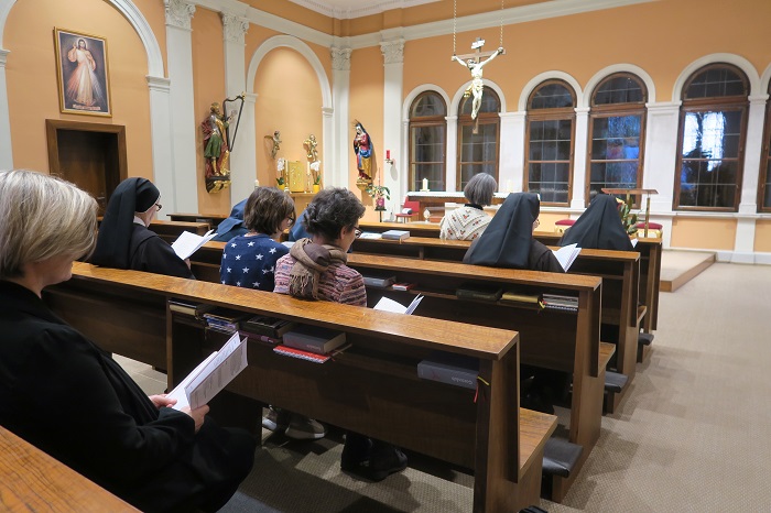 Ganz bewusst Beziehung erfahren und in Beziehung treten, in Beziehung zu Gott, zu den Mitmenschen und zu sich selbst und dem nachspüren. Dazu lud Sr. Bonaventura Holzmann, die Generaloberin der Elisabethinen Graz und Geschäftsführerin des Krankenhauses die Gäste ein. Roter Faden dafür waren Übungen aus den „Quellen der Kraft“, dem spirituellen Ratgeber, der in Ordensspitälern an Patientinnen ausgeteilt wird. Die Gäste wurden eingeladen, sich mit dem Vaterunser zu beschäftigen und sich auf Meditationen einzulassen, sie konnten Gebetsanliegen formulieren, die während der Vesper im Rahmen eines Weihrauchopfers vorgebracht wurden. Fotos von Händen der Schwestern bildeten in der Ausstellung „Und er streckte seine Hand aus“ die vielfältigen Talente, Alltagsmomente und Persönlichkeiten der Schwestern ab. Gemeinsam mit den Gästen wurde die Mittagshore gebetet und das Mittagessen geteilt. Zu einem intensiven Austausch über spirituelle und zwischenmenschliche Fragen kam es anschließend beim Kaffee. Die Vesper in der Chorkapelle bildete den gemeinsamen Abschluss.