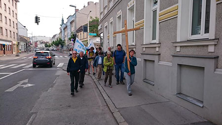Rund 80 TeilnehmerInnen waren zur Pfarre Schwechat gekommen, um sich am 24-Kilometer-Fußmarsch nach St. Gabriel in Maria Enzersdorf zu beteiligen. Auf dem Weg dorthin machte man auch den traditionellen Halt beim Islamischen Friedhofes in Liesing, um allen auf der Flucht verstorbenen Menschen zu gedenken. Im Don-Bosco-Flüchtlingswerk in Wien-Inzersdorf wurde danach ein Friedensbaum aufgestellt, der an die Möglichkeit eines guten Zusammenlebens erinnern und „Glauben, Geduld, ein Empor ragen, Mut und Lebenskraft“ symbolisieren soll, so Eva Kern, Geschäftsführerin des Don-Bosco-Flüchtlingswerks.