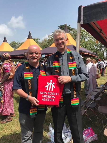 Eine große Freude: Bruder Günter Mayer von der Don Bosco Mission Austria und Provinzial Pater Petrus Obermüller feierten 25 Jahre Hilfe aus Österreich für Ghana. (c) Don Bosco Mission Austria