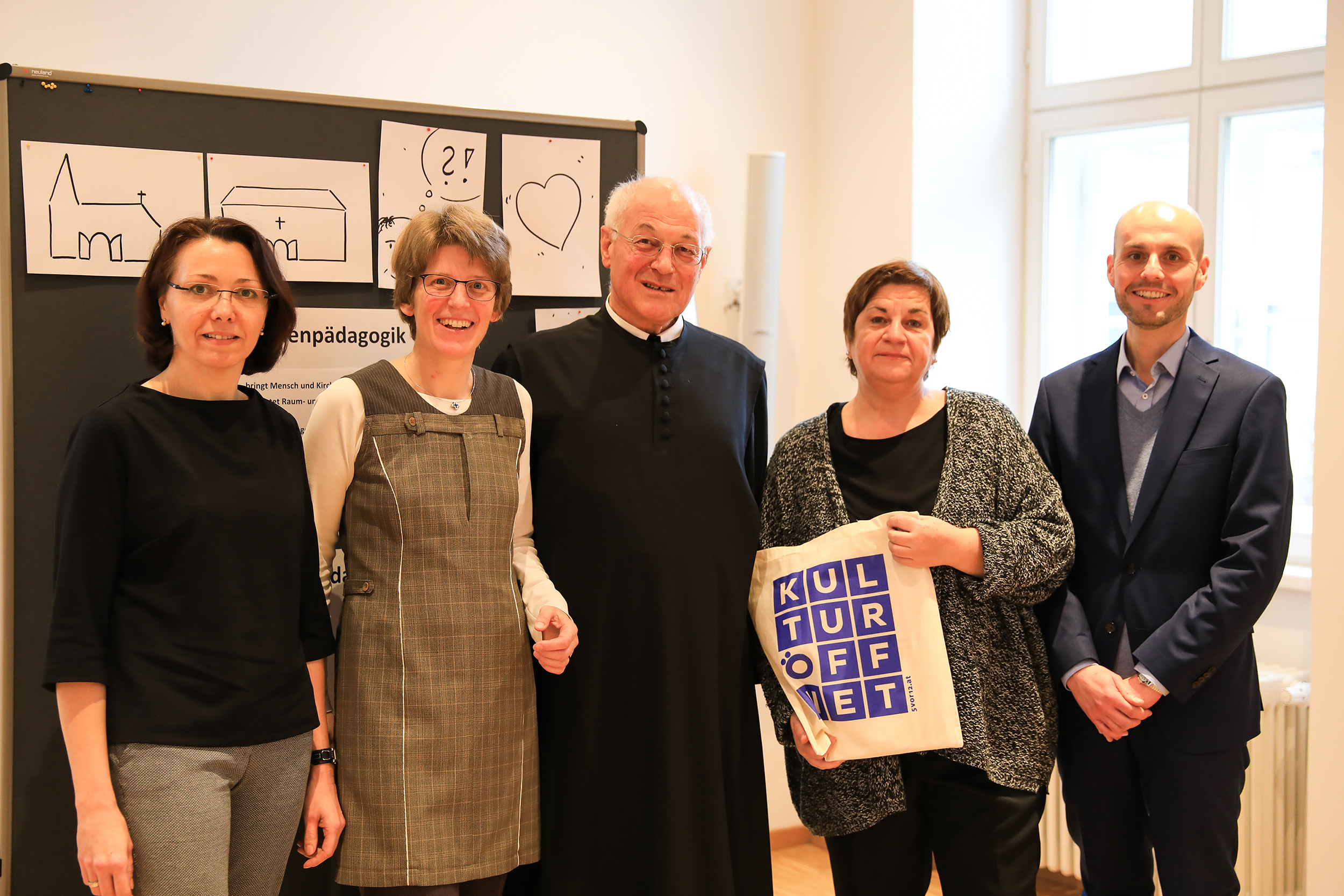Im Bild v.l.n.r.: Karin Mayer (Referat für die Kulturgüter der Orden), Sr. Ruth Pucher (Leiterin des Bereichs Ordensentwicklung im Kardinal-König-Haus), Abt Christian Haidinger (Vorsitzender der Superiorenkonferenz der männlichen Orden Österreichs), Hela Penz (Leiterin des Referats für die Kulturgüter der Orden), Klaus Landa (Oberösterreichischer Museumsverbund). (c) Ordensgemeinschaften Österreich/Magdalena Schauer