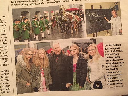 Der Vorsitzende des Vorstandes der Vereinigung von Ordensschulen Österreichs Rudolf Luftensteiner betonte in seinem Statement beim Festakt unter Anwesenheit von Erzbischof Franz Lackner, Landeshauptmann Wilfried Haslauer und vieler anderer Ehrengäste, „dass wir für die Jugendlichen gehen im Bewusstsein, dass von Gott her ein jeder von uns ein Ansehen hat und eine Würde. Der Ökonomisierungstendenz in der Bildung möchten wir ganz bewusst den Akzent der Bildung und Erziehung entgegensetzen und so den Auftrag und das Anliegen der Schwestern in die Zukunft tragen.“ Luftensteiner betont, dass es nicht nur auf berufliche und kognitive Qualität ankommt, sondern auch auf die emotionale Qualität der jungen Menschen. „Ein ebenso wichtiges Standbein im Erziehungskonzept von Ordensschule ist die spirituelle Ebene. Denn ohne diese Ebene fehlt Wesentliches im Menschseins.“