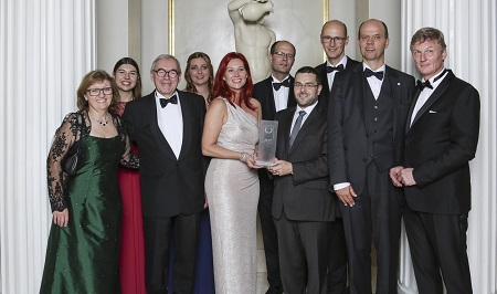 Die Delegation der Elisabethinen Graz mit Nikolaus Koller, Präsident der Bundeskonferenz der Krankenhausmanager in Österreich (3. von links) und Stephan Rotthaus, Initiator des KlinikAwards (ganz rechts). Foto: © Sebastian Runge