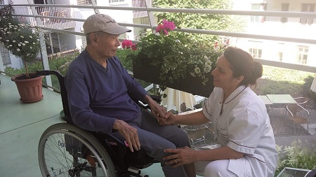 Für einen Bewohner und das Pflegeteam ist Seema in letzter Zeit in besonderer Weise zu einer Bereicherung geworden. Vor einiger Zeit ist Herr L. ins Pflegezentrum eingezogen. Die Familie hat ihre Heimat China früh verlassen und sich in Indien, an der Grenze zu Pakistan, eine Existenz aufgebaut. Dort haben sie ein Unternehmen geführt, dessen Geschäftsführer Herr L. bis zu seiner Pensionierung war. In der Pension kam er zu seinen Töchtern nach Wien, wurde krank und übersiedelte ins Pflegezentrum. Da er nur wenige Brocken Englisch spricht, konnte sich niemand recht mit ihm unterhalten. Zwar gibt es im Pflegeteam eine Mitarbeiterin, die aus China stammt, aber mit Herrn L. konnte auch sie sich nicht verständigen. Die einzige, der es gelang, mit Herrn L. zu sprechen, war Seema. Sie erklärt, warum: „Ich habe vor vielen Jahren drei Monate in Indien gelebt, in jenem Gebiet, in dem auch Herr L. sein Unternehmen hatte. Und in dieser Zeit habe ich Urdu gelernt und das Wesentliche behalten.“