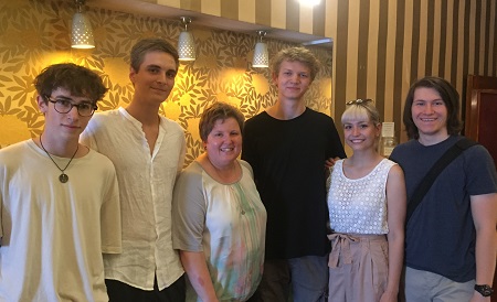 Die jungen FilmemacherInnen (li: Michael Schmidl, dritte von li Sr. Heidrun Bauer) vor der Filmpremiere im Filmcasino Wien