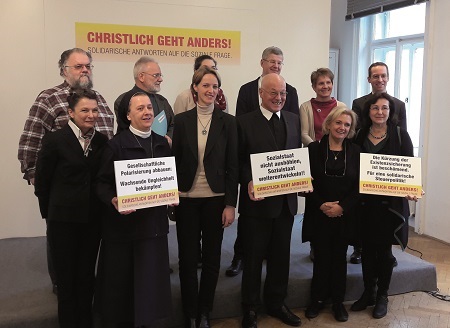 Auch im breiten Kirchenbündnis „Christlich geht anders!“ gegen Armut und für soziale Gerechtigkeit ist die Katholische Frauenbewegung vertreten. Rechts im Bild Veronika Pernsteiner, die Vorsitzende der kfb. Foto: [rs]