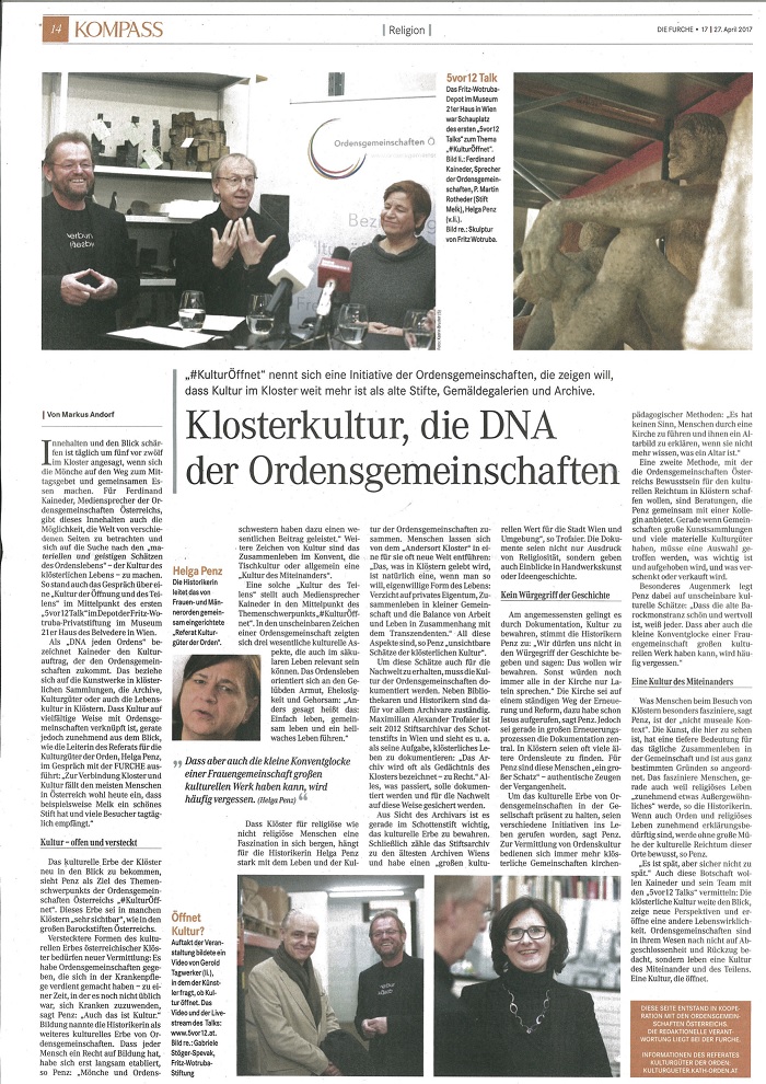 Die Pilotveranstaltung zur neuen und innovativen Talk-Reihe der Ordensgemeinschaften ging im Wotruba-Depot in die erste Runde. Der Austragungsort inmitten von Skulpturen war genauso einzigartig wie die Zusammenstellung der Diskutanten. Auch das Medienecho war großartig.