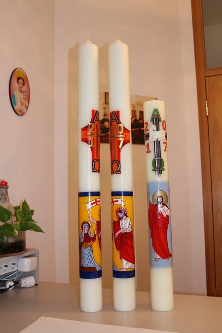 Im Konvent in Wien sind die Barmherzigen Brüder stolz auf die kreativen Arbeiten von Frater Thomas Pham. Er gestaltet jedes Jahr die kunstvollen Osterkerzen für die Klosterkirche und die Krankenhauskapelle der Barmherzigen Brüder. Inspiriert durch einen Bericht aus dem Johannesevangelium (Joh 20,15-17) heuer mit dem Motiv „Jesus erscheint Maria Magdalena".