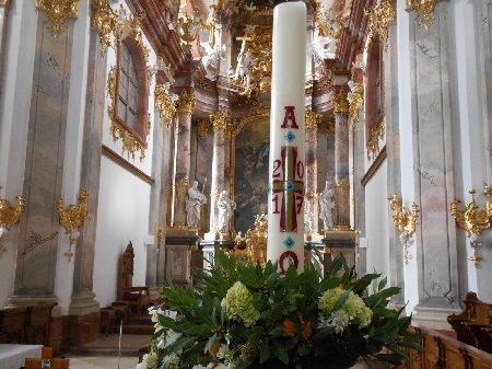 Auch in der Stiftskirche Wilhering war man sehr stoz auf eine gelungene Osterkerze und teilte das Bild auf Facebook mit allen Freunden in der digitalen Welt: