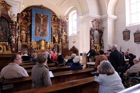 Die Referentin Martina Gelsinger (Kunstreferat) führte die Gruppe in Begleitung von Sr. Ruth Pucher, Missionarinnen Christi durch die Kirchenlandschaft von Traun nach Schiedlberg und Steyr, danach von Garsten nach Ternberg und Weyer.