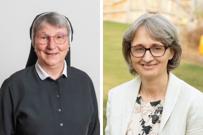 Blicken gemeinsam in die Zukunft: Sr. Sonja Dolesch (links), Vorstandsvorsitzende des VfFB, und Hermine Nöhrer (rechts), die Leiterin des Pater-Kolbe-Kindergartens. (c) Ludwig Pullirsch, Foto Wieland