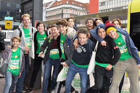 Einige der 60 Jugendlichen der (jesuitisch geprägten) mk Innsbruck, bevor sie sich mit Elan zu den einzelnen Sozialprojekten aufmachen.