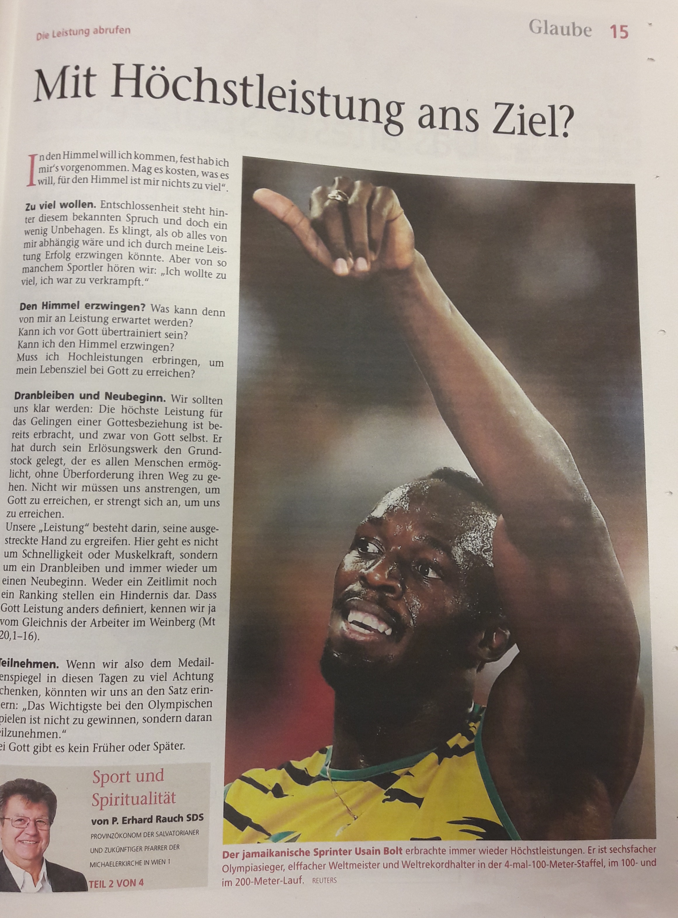 Für die Dauer der Olympischen Sommerspiele in Brasilien vom 5. bis zum 21. August 2016 schreibt P. Erhard Rauch für österreichische