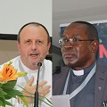 Erzbischof Roque Paloschi aus Brasilien, Nachfolger von Bischof Erwin Kräutler als Präsident des Indianer-Missionsrates CIMI, und Generalsekretär P. Franz Helm, Superiorenkonferenz der männlichen Orden Österreichs, der die Fachtagung Weltkirche in Vertretung der Ordensgemeinschaften Österreich mitorganisiert hat. (c) Ordensgemeinschaften Österreich/Manu Nitsch
