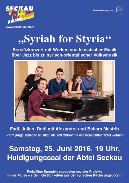 So entstand die Idee zu diesem Benefizkonzert. Eintritt werde keiner verlangt; doch freiwillige Spenden seien willkommen. Sie kommen zur Gänze sozialen Projekten der Benediktinerabtei zugute. „Es ist unsere Art, Dankeschön zu sagen“, meint Bshara. Syria for Styria, Syrien helfe jetzt der Steiermark; so kann es auch einmal gehen. Das Konzert ist auch ein Geschenk für Prior P. Johannes Fragner, der am 26. Juli auch sein silbernes Priesterjubiläum feiert. Und zum Ohrenschmaus gibt es auch kulinarische Leckerbissen: In der Pause werden Köstlichkeiten aus der syrischen Küche angeboten!