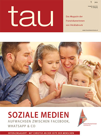 Die aktuelle Juni-Ausgabe von "tau", das Magazin der Franziskanerinnen von Vöklabruck, setzt sich mit dem Thema "Soziale Medien - Aufwachsen zwischen Facebook, Whatsapp & Co." auseinander. Im Mittelpunkt steht die Frage: Wie gehen die Jugendlichen mit dem sog. Web 2.0 um. Wird die digitale Welt immer mehr zum Ersatz für ein analoges Leben? Oder können die sozialen Netzwerke eine Chance sein, junge Menschen in ihren Lebens- aber auch Glaubensfragen zu erreichen?