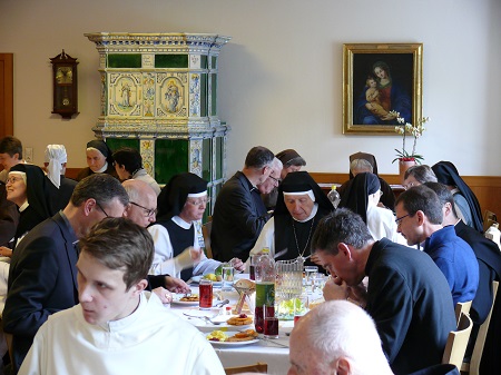 Nach dem Vortrag feierte Weihbischof Eleganti mit den Ordensleuten in der Pfarrkirche St. Gallus die Eucharistie. Die geistliche Familie „Das Werk“ lud anschließend zu einem einfachen Mittagessen und geschwisterlichen Beisammensein in das Refektorium des Klosters ein. Eine feierliche Maiandacht in der Klosterkirche beendete den diesjährigen Ordenstag.