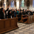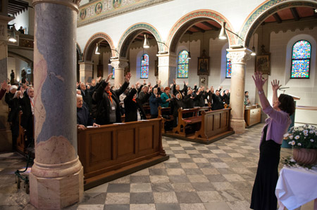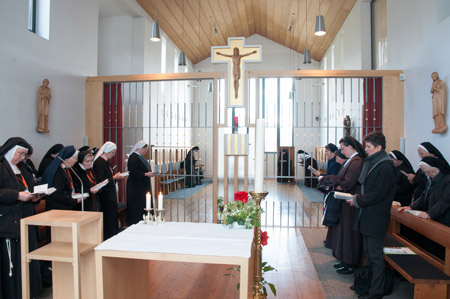 „Da wohnt einen Sehnen tief in uns“, erklang ein kräftiger Gesang in der Mutterhauskirche der Barmherzigen Schwestern in Innsbruck, die Kirche war bis auf den letzten Platz besetzt. Zum Jubiläum „50 Jahre Vereinigung der Frauenorden“ hatten sich die Frauen der Katholischen Frauenbewegung gesellt. Sie bereiteten zu Ehren des Jubiläums und des Festtags der heiligen Katharina von Siena das gemeinsame Abendgebet, die Vesper, vor.