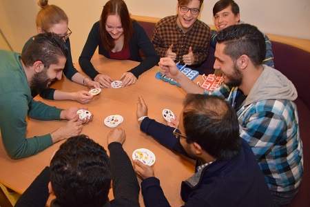 Beim Spielenachmittag trafen sich 30 Deutschlernende und Freiwillige und hatten viel Spaß bei Karten- und Brettspielen. Der Film „Ziemlich beste Freunde“ war zwar für viele sprachlich eine Herausforderung, die Botschaft des Filmes war trotzdem allen klar. Foto: Don Bosco
