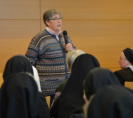 Sr. Paloma Fernández de la Hoz ging in ihrem Referat zur Enzyklika „Laudato si“ auf Hintergrundaspekte, zu denen sie biographische Wesenszüge des Papstes zählte. Sie vertiefte Schlüsselbegriffe und inhaltliche Überzeugungen, z.B. sei christliche Spiritualität untrennbar von sozialer und ökologischer Gerechtigkeit. Papst Franziskus stünde für eine froh und authentisch gelebte ganzheitliche Ökologie. "Wir vergessen, dass wir selber Erde sind", so die Ordensfrau.
