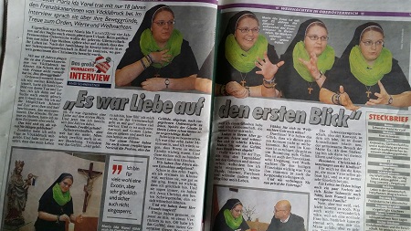 Einen völlig anderen Weg wenn auchg nicht weniger konsequent geht Sr. Maria Ida Vorel. Die 22jährige Gärtnereifachfrau trat bereits mit 18 Jahren bei den Franziskanerinnen von Vöcklabruck ein. "Ich hab sofort gespürt, dass das mein Leben ist. Es war irgendwie Liebe auf den ersten Blick", sagt die Ordensfrau, deren Kennzeichen ihr giftgrüner Schal (O-Ton) ist, im Interview mit der Kronen-Zeitung. Wie hätten ihre Freunde auf ihren Entschluss reagiert? "Einige habwn gemeint, das passt zu mir. Viele sehen mich auch als eine Art Aussteigerin vom System."