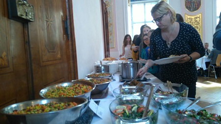 Wenn es um das Thema „Flüchtlinge“ geht, herrschen oft viele irrationale Ängste vor. Mit einer gemeinsamen Aktion der Klasse 7A des Realgymnasiums, einer Gruppe von Schülerinnen und schüler aus der Handelsakademie und unter der Schirmherrschaft von Abt Maximilian sollte genau diesen Ängsten entgegengewirkt werden. Die Jugendlichen kochten gemeinsam mit einer syrischen Flüchtlingsfamilie österreichische und syrische Speisen für Gäste aller Nationen, die mit diesem Charity Lunch neu ankommende Flüchtlinge unterstützen können (helfenwiewir.at). Das gemeinsame Kochen und das gemeinsame Essen boten die Möglichkeit, sich näher kennenzulernen und Vorurteile abzubauen.