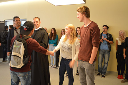 Mit einer Willkommensfeier begrüßten die SchülerInnen der Oberstufe ihre neuen Mitschüler, „die Neulinge“, wie sie sie nennen. Am Dienstag begann der reguläre Unterricht. Der Deutschunterricht nimmt vorerst den größten Teil des Stundenplanes der Schüler der IVK-Klasse (Internationale Vorbereitungsklasse) ein. Zusätzlich nehmen die IVK-Schüler bereits punktuell am Unterricht einiger Klassen teil wo die Sprache kein Hindernis darstellt, wie beim Turnen oder in Bildnerischer Erziehung.