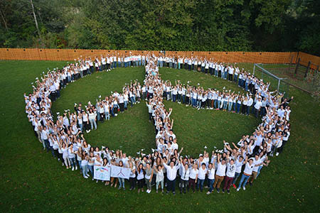 Anlässlich des "Internationalen Tages des Friedens" am 21. September stellen sich die Schülerinnen und Schüler der BAKIP und HLW Sta Christiana Frohsdorf als Peace-Zeichen auf. (c) BAKIP/HLW Sta Christiana Frohsdorf