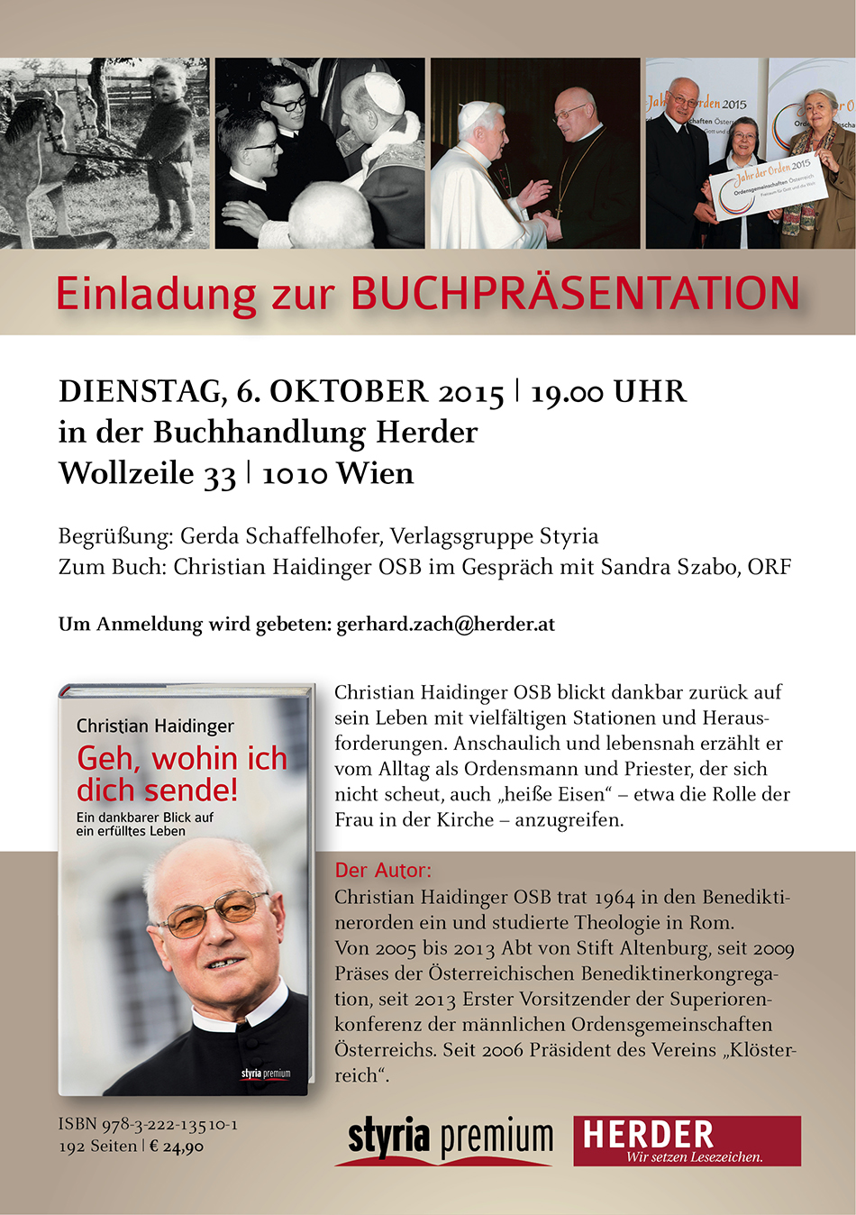 Einladung zur Buchpräsentation von Abtpräses Christian Haidinger