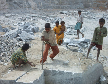 Zahlreiche Natursteinprodukte, die in Österreich verkauft werden, darunter Pflastersteine, Grabsteine oder Küchen- und Bodenplatten, stammen aus China, das das dafür nötige Rohmaterial vielfach aus Indien importiert. Dort arbeiten trotz offiziellem Verbot Zehntausende Kinder unter unmenschlichsten Bedingungen in Steinbrüchen. Ihre Lebenserwartung beträgt kaum mehr als 40 Jahre. Meist lassen die große Armut und die hohe Verschuldung ihrer Eltern den Kindern keine Wahl, als zum mageren Familieneinkommen beizutragen – eine Chance auf Schulbildung haben die wenigsten von ihnen.