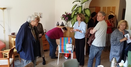 FreundInnen, KollegInnen, Nachbarn, aber auch Neugierige, die über die Medien davon erfahren hatte, folgten der Einladung der drei Ordensfrauen der Missionarinnen Christi. Ihr Zuhause ist von außen recht unspektakulär in Wien 23. Die Neugierde geht dahin, speziell ihre Art von „Kloster“leben kennenzulernen. Bei Kaffee und Kuchen, netten Plaudereien und einer kleinen Abendandacht verging die Zeit wie im Flug. Bei der Anbringung der "Willkommensplakate" halfen die ersten Gäste mit. Die letzten Gäste verließen nach der Abendandacht das Kloster. Rund 55 Besucherinnen und Besucher nutzten den Tag der Offenen Tür, die drei Missionarinnen Christi, Sr. Maria, Sr. Ruth und Sr. Joanna, kennenzulernen. Ihr Kloster ist ein privates Haus, das eine neue Interpretation von Ordensleben widerspiegelt. Alle Altersklassen – die jüngste Besucherin war einige Monate alt – fanen im Haus zusammen. Einige waren schon öfter dagewesen, einige kamen zum ersten Mal aus purer Neugierde. Sie waren überrascht. „Ich habe mir etwas komplett anderes vorgestellt“, meinte ein Besucher, der vom Tag der offenen Tür auf Facebook erfahren hatte. Auf die Frage, wie anders, sagte er: „Einfach anders. Nicht so normal.“ Highlights waren sicherlich die Hausführungen von Sr. Joanna, die Erklärungen zu den aufgehängten Bildern gab und voll Stolz ihren Meditationsraum präsentierte – inklusive Konzertflügel. Sr. Joanna ist Konzertpianistin.